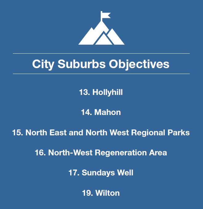 Cork City Council in collaboration with landowners and relevant stakeholders will progress the Neighbourhood Development Sites through active land management. These sites will benefit the local neighbourhood and support compact growth. Development proposals will address the relevant points highlighted by the text and icons associated with the maps and relevant objectives throughout this plan.