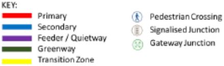 Consideration should be given to how proposed development will support the safety of local road users, with priority given to pedestrians and cyclists. Road safety is relevant to every site; however, this icon is specifically used where road safety concerns are a specific factor to address.