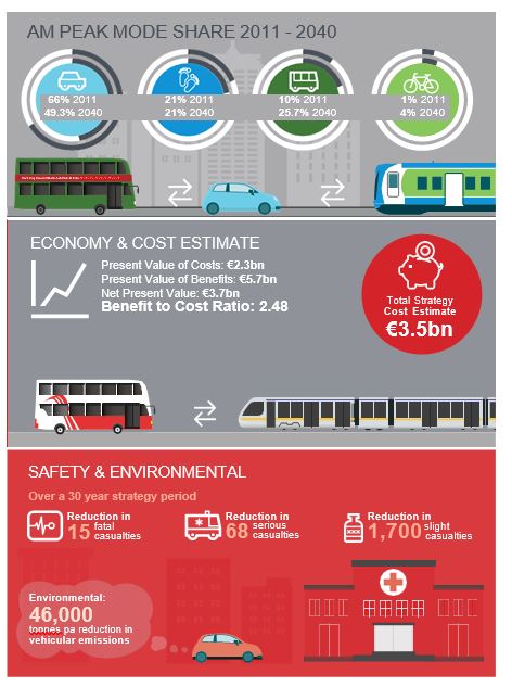 • Development of a much-enhanced citywide public transport system, improved regional connectivity and improved rail journey times to Dublin and other centres in Ireland; and