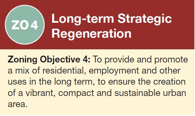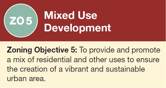 Zoning objectives only relate to land use. A range of other factors including density, height, mobility, design and environmental criteria, amongst others, determine whether or not any particular development proposal is appropriate in an area. Zoning objectives cannot be considered in isolation and must be read in association with all Development Plan objectives set out in this Plan. If in doubt, the direction provided in the Core Strategy should be followed.
