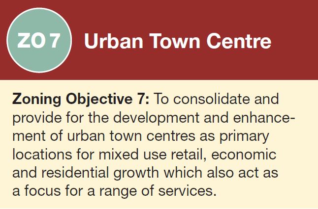The primary purpose of this zone is to consolidate and develop the existing urban town centre areas as primary locations for retail, economic, residential, cultural, community, leisure, civic and other related uses. The primary retail areas will form the main focus and preferred location for new retail development, appropriate to the scale and function of each centre. Residential development will be encouraged particularly in mixed use developments.