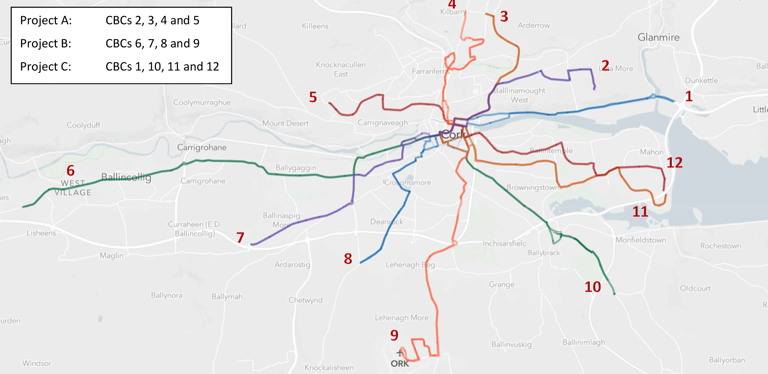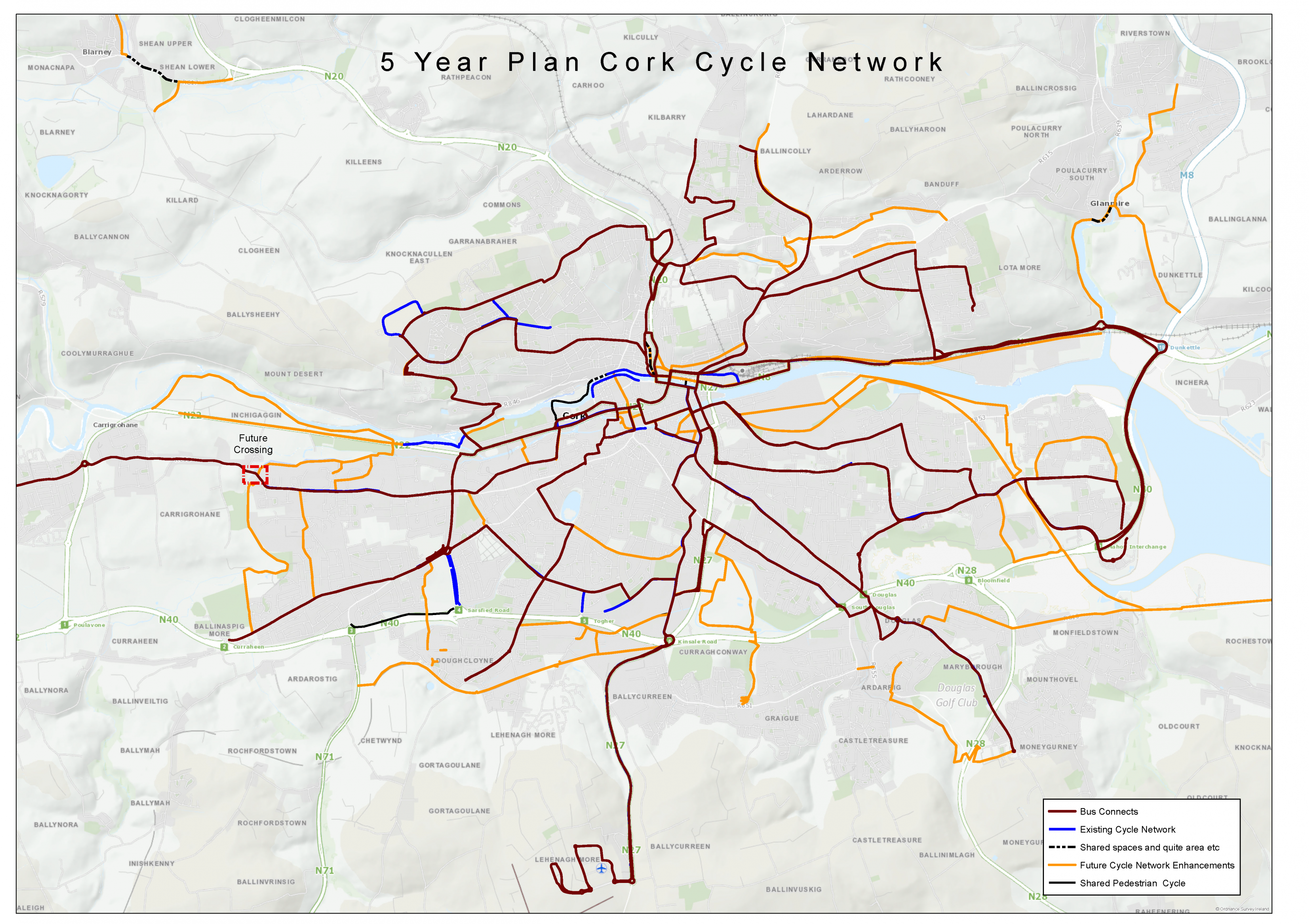 • A series of direct road links between the N8, the N25 and the N40 and links to the R623 Regional Road in Little Island and Burys Bridge in Dunkettle;