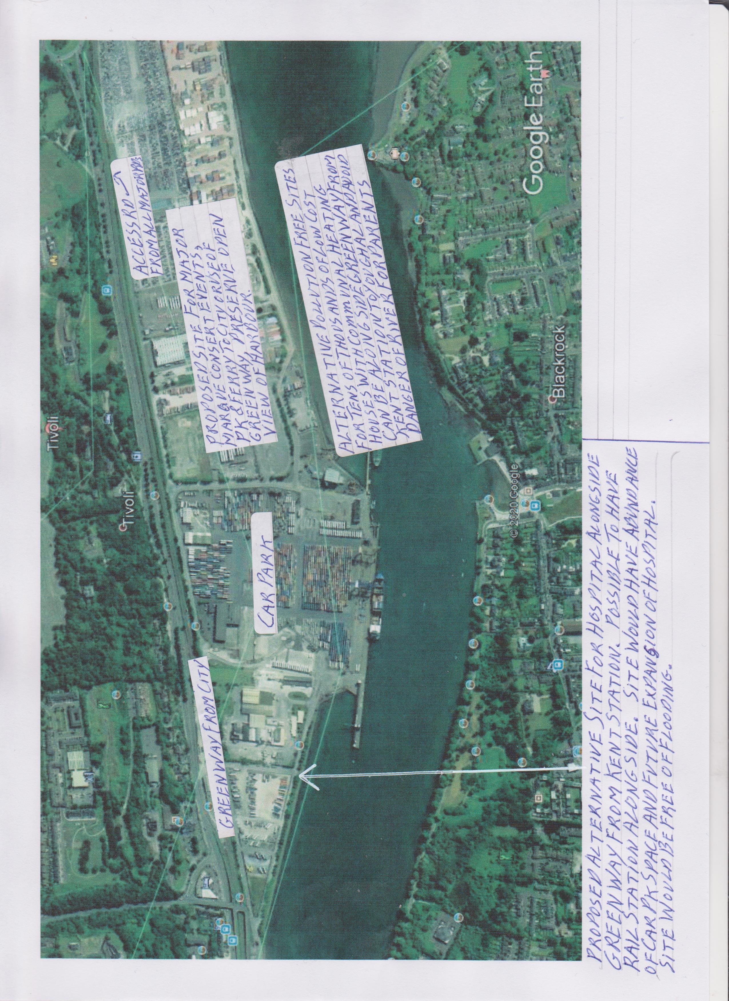 As the Tivoli Port site is the last large bastion of land close to the city I suggest that the western side of that site could be used for a hospital.